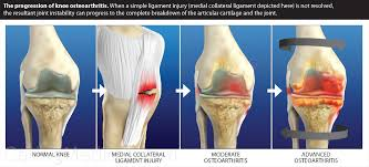 Increased pain, swelling, and stiffness. Fractures. More difficulty straightening or flexing the affected knee joint. Joint deformity, poor mobility, and reduced range of motion.
